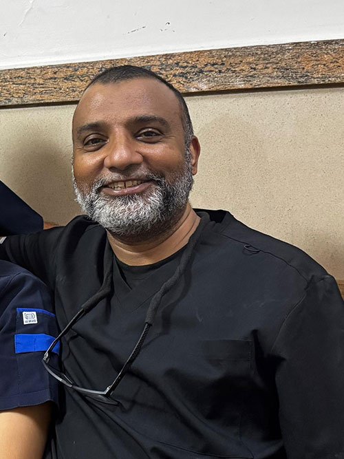 Dr. Masood, ER physician. He did not come with our group, but we adopted him quickly into the team because of who he is. He was the workhorse. Day shift/night shift… it didn’t matter. If he heard an MCI had occurred, he got dressed and ran down to the ER every time MashAllah. His kindness and insistence on helping is what defines my understanding of him. He was also simultaneously studying for a high-level certification for religious studies between patients and would walk around the tents around the hospital so he could find and provide food to people. May God preserve these qualities in him and protect him.